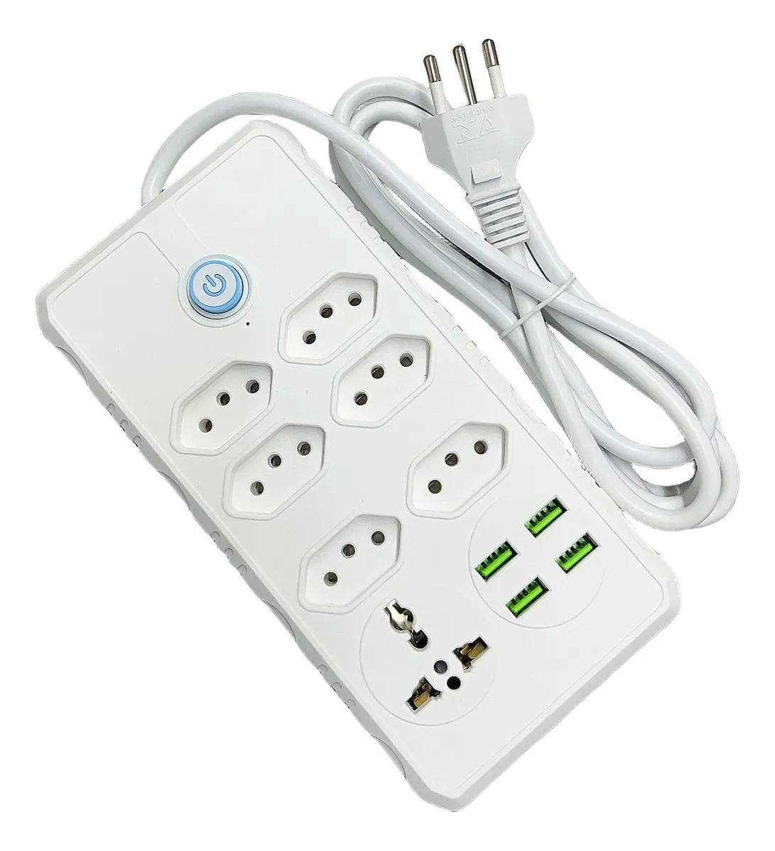 A Extensão Elétrica 7 Tomadas Régua Bivolt C/ 4 Usb Cabo 2m da é a solução ideal para quem busca praticidade e eficiência no dia a dia. Com um design compacto, suas dimensões de 3,5 x 10,2 x 20,5 cm facilitam o armazenamento e o uso em qualquer ambiente. Possui 6 tomadas de 3 pinos de 10 A, além de uma tomada universal, permitindo a conexão de diversos aparelhos. As 2 portas USB de 5V 2A são perfeitas para carregar dispositivos móveis com rapidez. O cabo de 2 metros proporciona flexibilidade na disposição dos equipamentos. Este produto é bivolt, compatível com tensões de 110 a 220V, e suporta uma potência de até 500 W. Além disso, é novo e não possui validade, garantindo durabilidade e segurança para o seu uso diário.