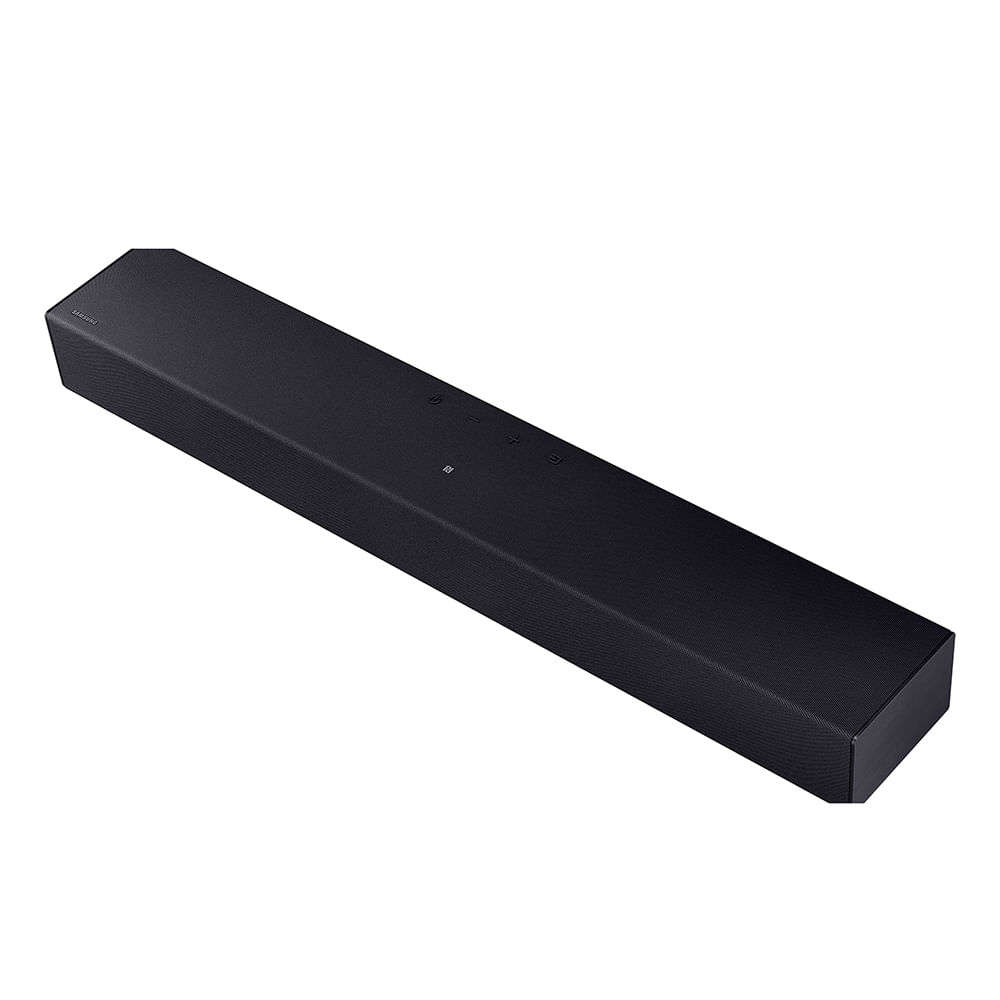 Som dinâmico. Expansão de Som Surround. Encha cada canto do seu espaço e sinta-se parte da ação Sinta o ritmo dos graves. 2.0 Ch Woofer embutido. Deixe-se levar pela profundidade dos sons graças a 2 alto falantes com woofer integrados na barra para potenciar os graves. Um único comando. Um Controlo Remoto. Controle todos os seus dispositivos e aceda aos seus conteúdos com o Controle Remoto Único Esqueça os cabos. Ligação Bluetooth à TV.